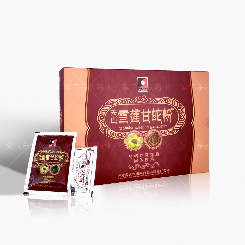 【产品名称】乌梢蛇雪莲粉固体饮料 【产地】吉林省通化市。 【配料】薏苡仁、木瓜、乌梢蛇、大枣、甘草、干姜、雪莲培养物、麦芽糊精。 【食用方法】建议开水冲服或加人其它食品中服用,每次袋,每日1-2次。 【生产企业】吉林省紫气东来药业有限责任公司 【保质期】24个月。 【生产地址】吉林省通化市通化开发区蓝岛路85号 【贮存条件】阴凉干燥处密封保存。 【服务电话】 0435 3459566 【不适宜人群】婴幼儿、孕妇 【注意事项】本品不能代替药物 【产品类别】固体饮料